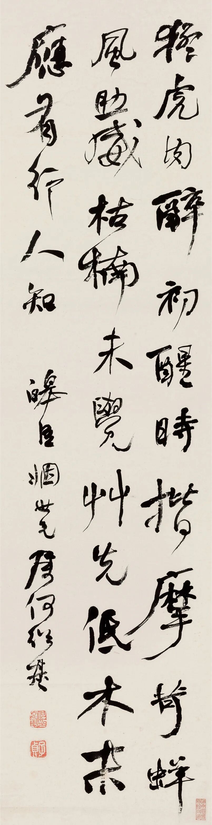 何绍基行书黄庭坚《题伯时画揩痒虎》轴