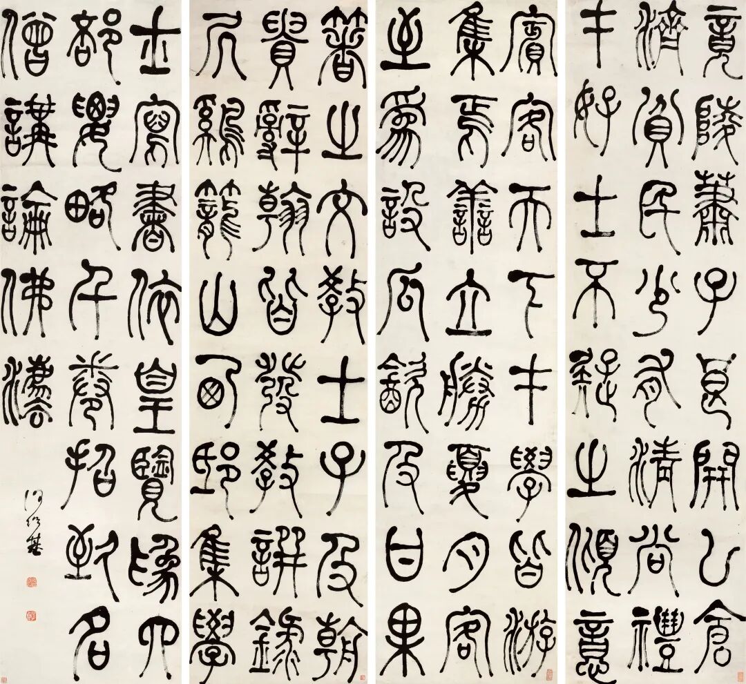 “秦相易古籀为小篆,遒肃有余,而浑噩之意远矣。用法刻深,盖亦流露于书律。”