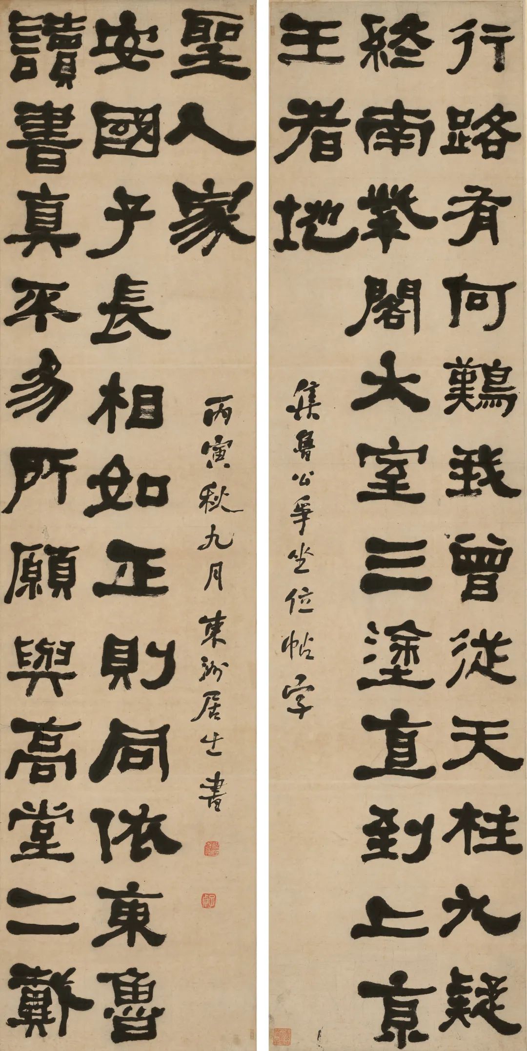 何绍基 隶书黄庭坚《次韵王荆公题西太一宫壁二首》(其一)轴