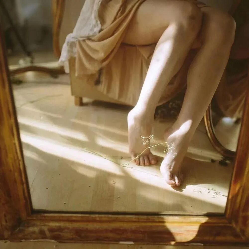 Antonie De La Roquelle作品中安静柔美的特写画面,展现了少女的孤独敏感,低饱和色彩渲染出内敛怀旧的气质。镜子和花朵都是其作品中常见的元素,用这些小元素加强模特本身的表达和感染性。少女情怀总是诗,浮现在油画质感中的光线与魅影中。