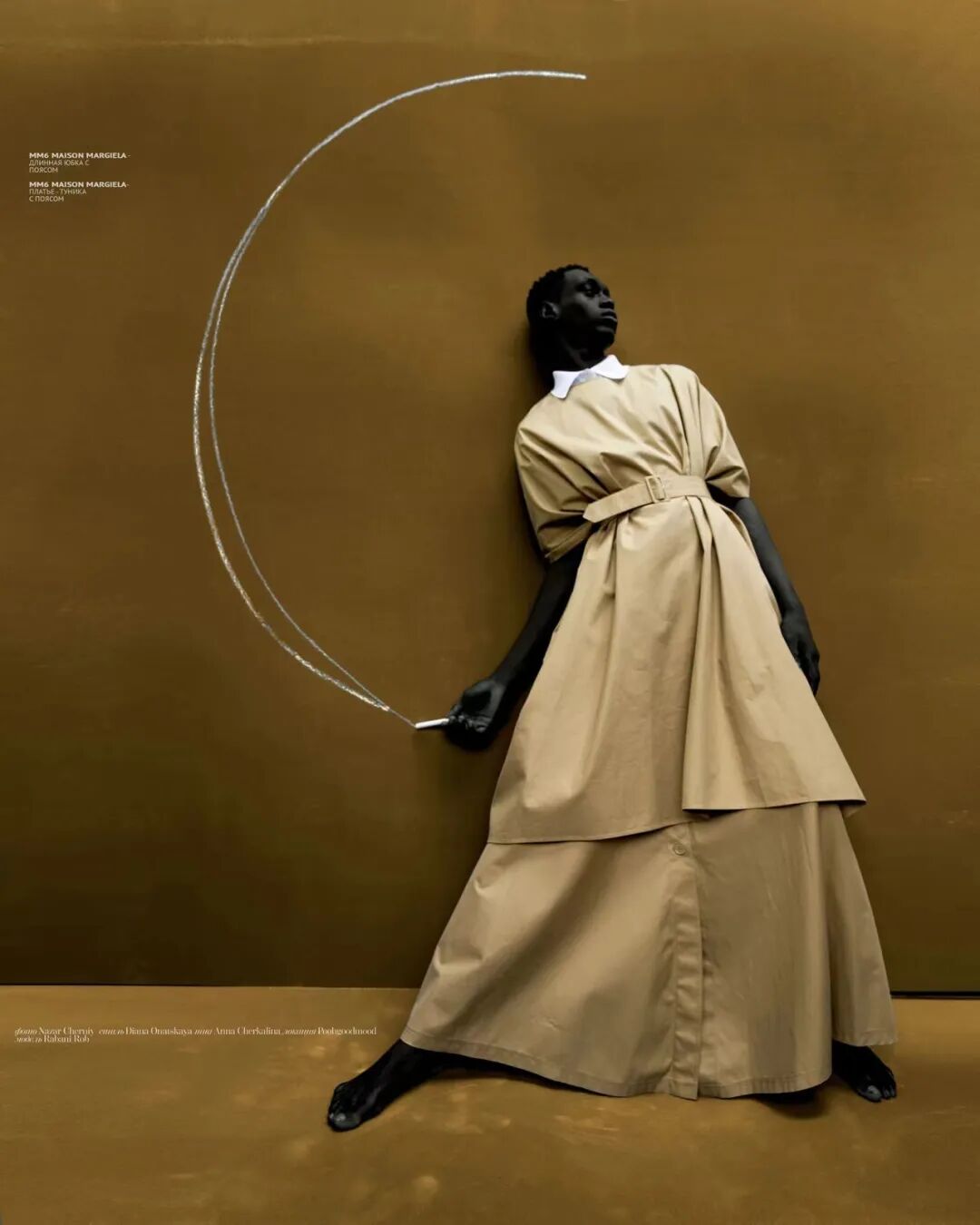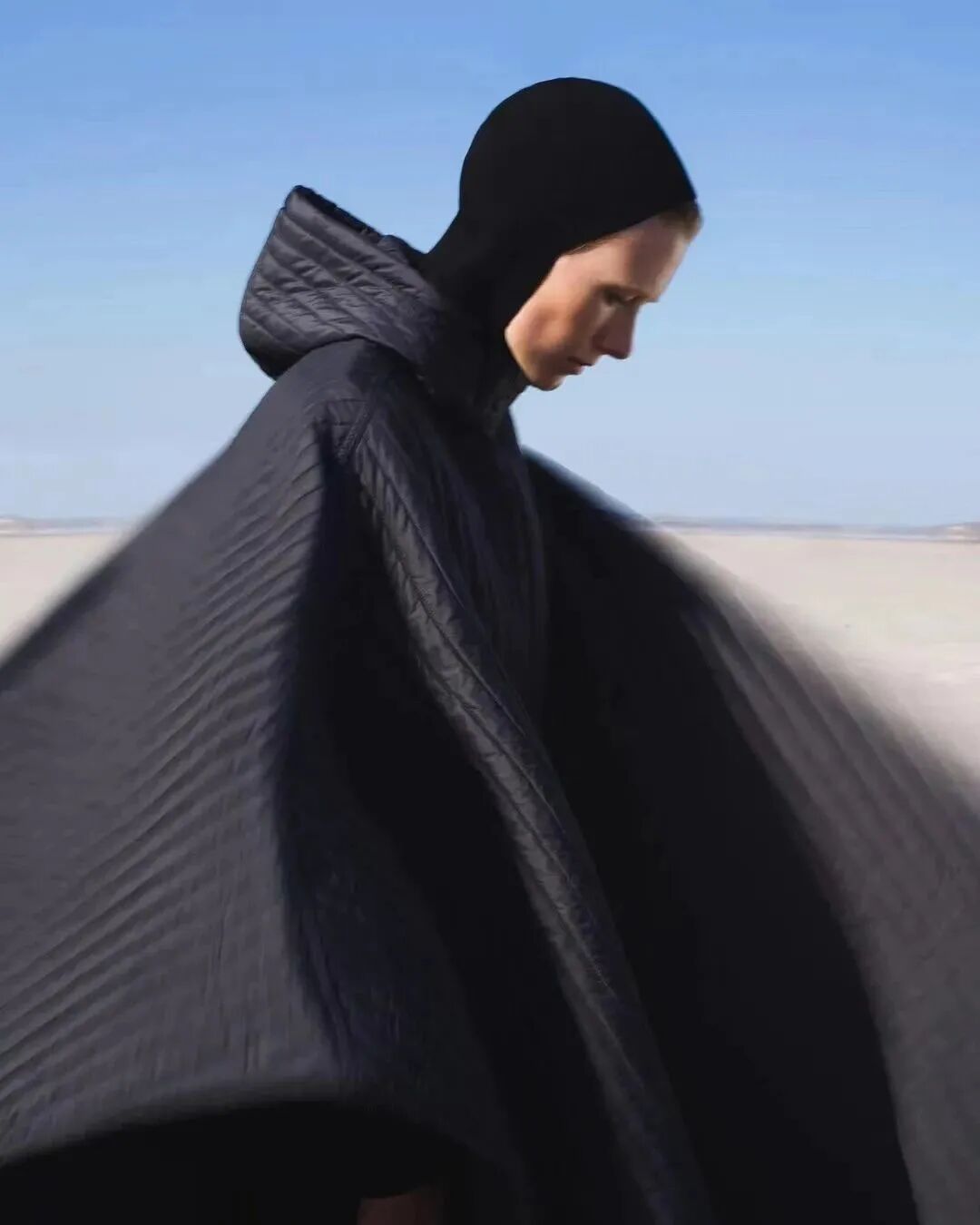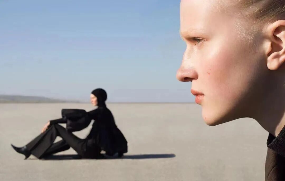 Nazar Cherniy的作品有着强烈的框架感,画面的力量有真挚到虔诚的地步。其作品中有不同肤色的模特,时尚的完成度也靠肤色,不同的色彩搭配有着强烈的冲击力。大量的荒漠实拍与远景和近景的层层递进,好似就发生在你的眼皮底下,却又给人无声息中平地一声惊雷响的震撼,像是史诗中停顿的某一章节,磅礴而又深邃。