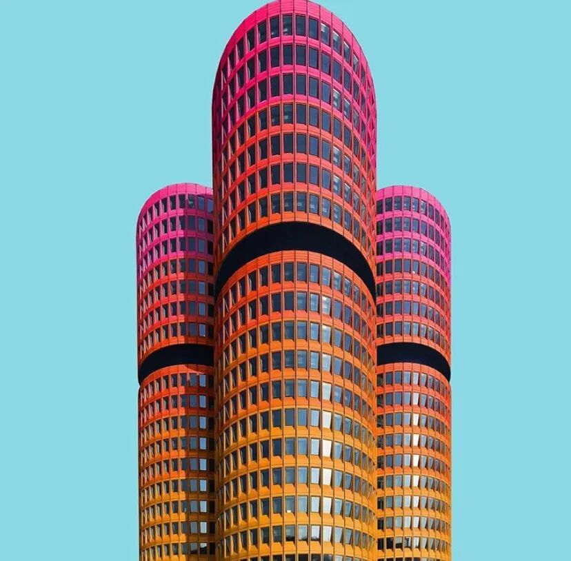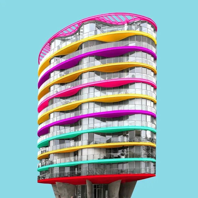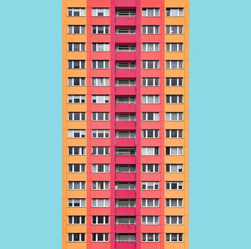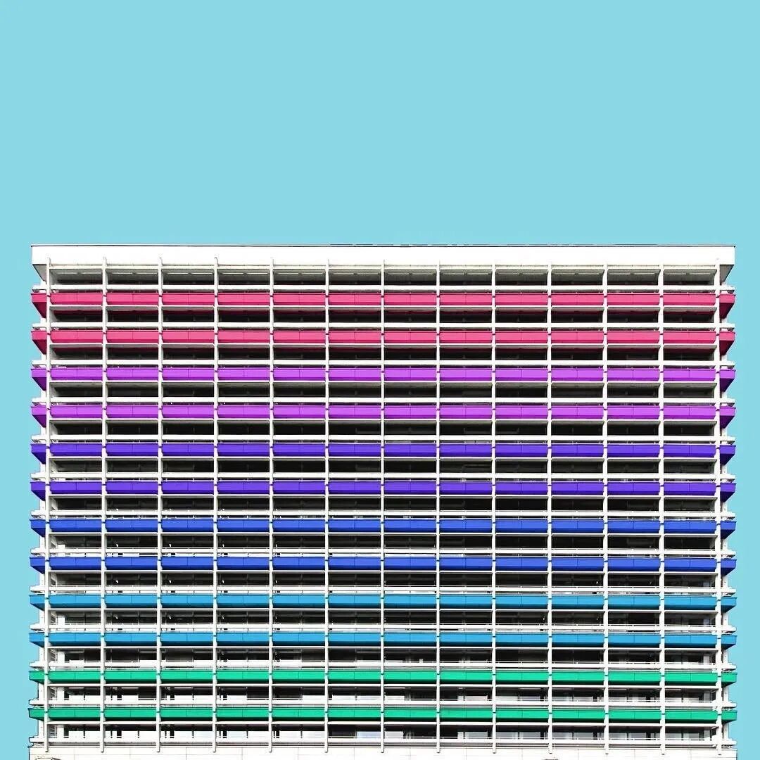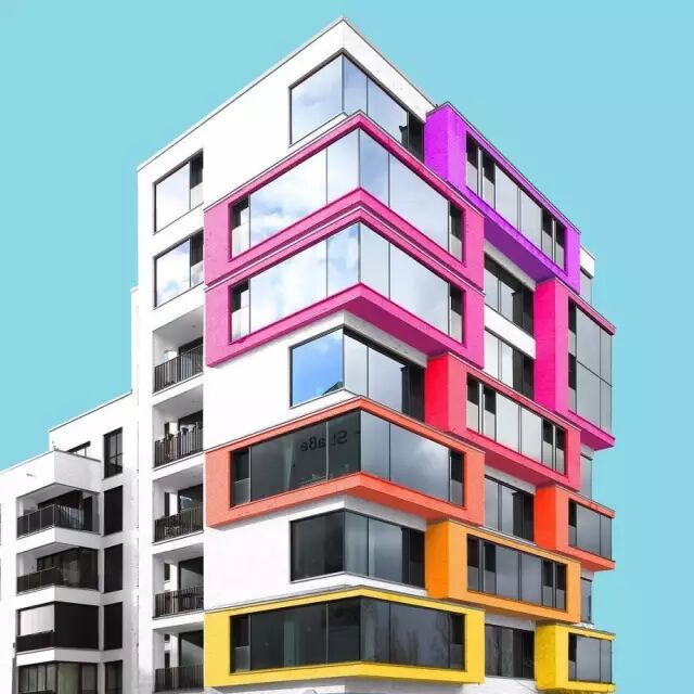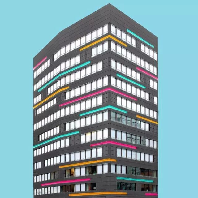 Paul Eis建筑摄影,特别是以简约实用为设计理念的现代建筑,有时会显得沉闷无趣。尽管那些具备玻璃幕墙的建筑能够通过反射光线来提升趣味性,但大部分建筑的色彩还是太过单调了。于是,一位来自德国柏林的18岁摄影师 Paul Eis,决定为其镜头中的建筑物增添更多色彩。