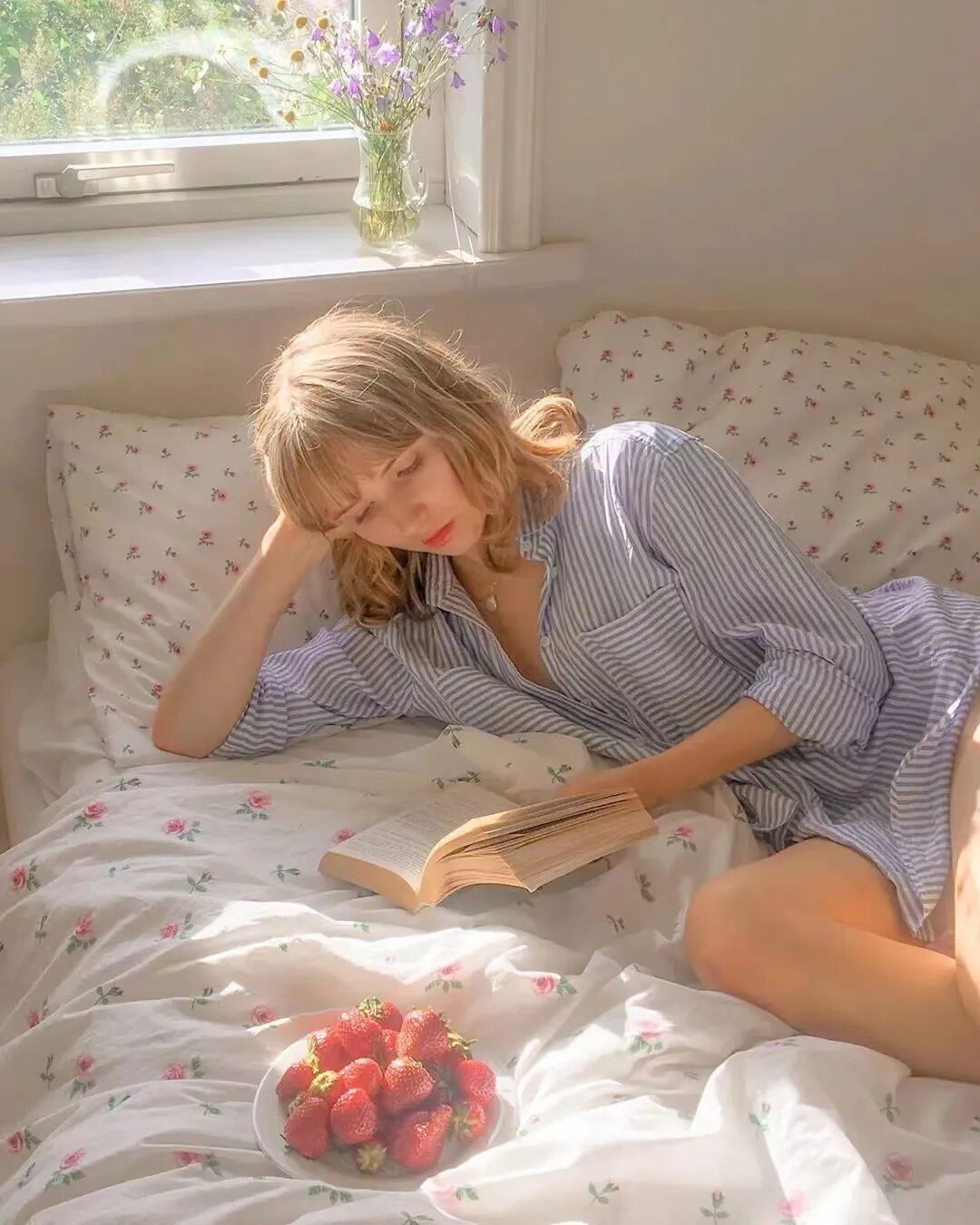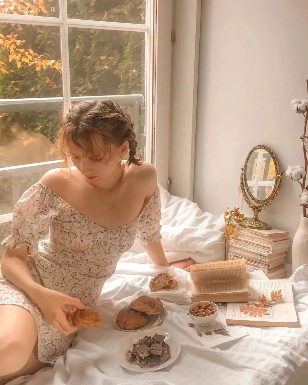 Rebecka Wahl是一位来自瑞典的摄影师,她的作品给人第一感觉是中世纪欧洲油画里的小公主在分享她的日常。她非常喜欢阳光,书,花茶,整个作品的调子都是温柔的,阳光总是温柔地笼罩着她,仿佛就是瑞典童话里的小仙子。