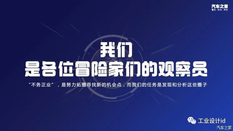 汽车之家是各位冒险家们的观察员,“不务正业”是努力拓圈寻找新的机会点,而汽车之家的任务是发现和分析这些圈子。“不误正业”是一场前所未有的大冒险,一群卷王,寻找不卷的彼岸。