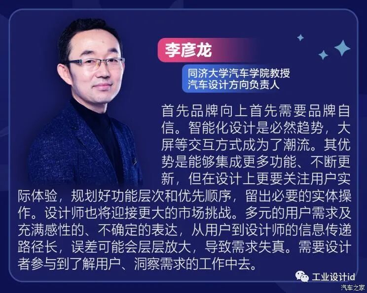 我们同样邀请了来自国内一流汽车设计院校的几位教授代表,从学术性的角度为我们输出更多的有效观点和方向参考,下面一起来了解一下他们的主要看法。