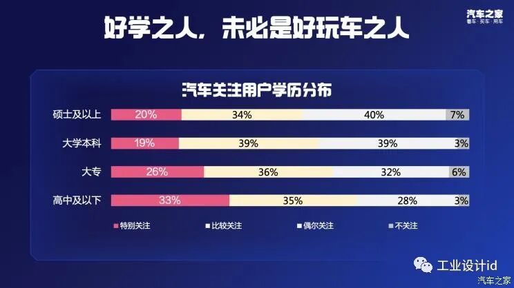 在性能车主题的调查显示:随着学历的提升,对性能车的关注程度呈现降低趋势,或许好学之人未必是好玩车之人。