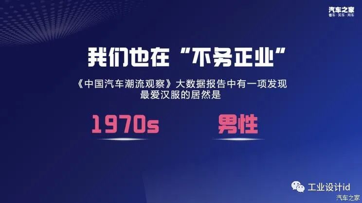 像这样的出圈行为,汽车之家也做了不少。例如最新一期《中国汽车潮流观察》大数据报告中,汽车之家基于对文化主题服装玩家进行大数据画像后发现,更爱汉服的群体,居然是70后及男性。