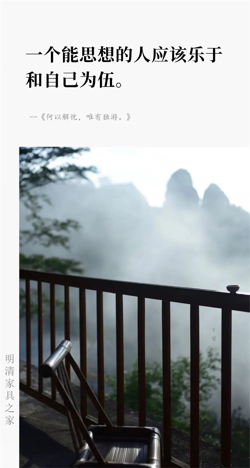 独游有双重好处。第一是绝无拘束,一切可以按自己的兴趣去做,只要忍受一点寂寞,便换来莫大的自由。