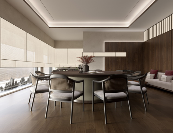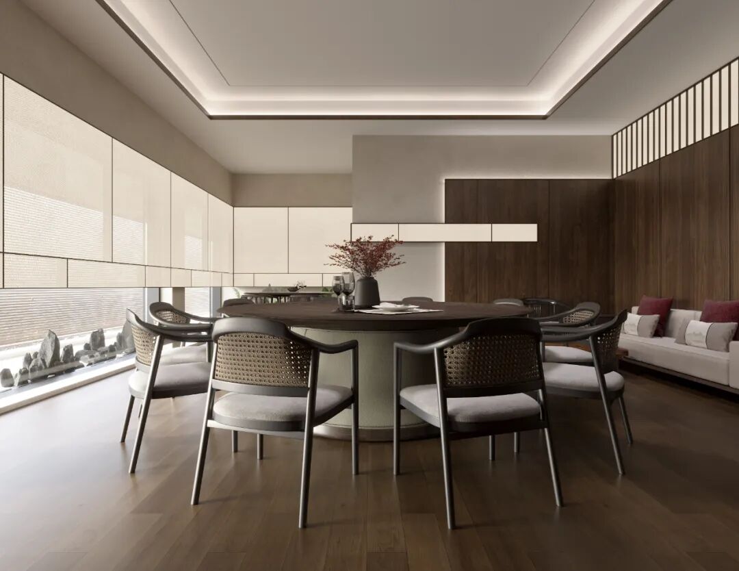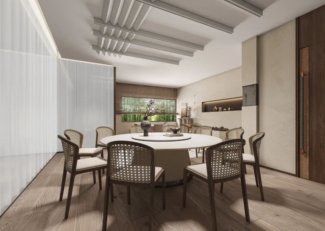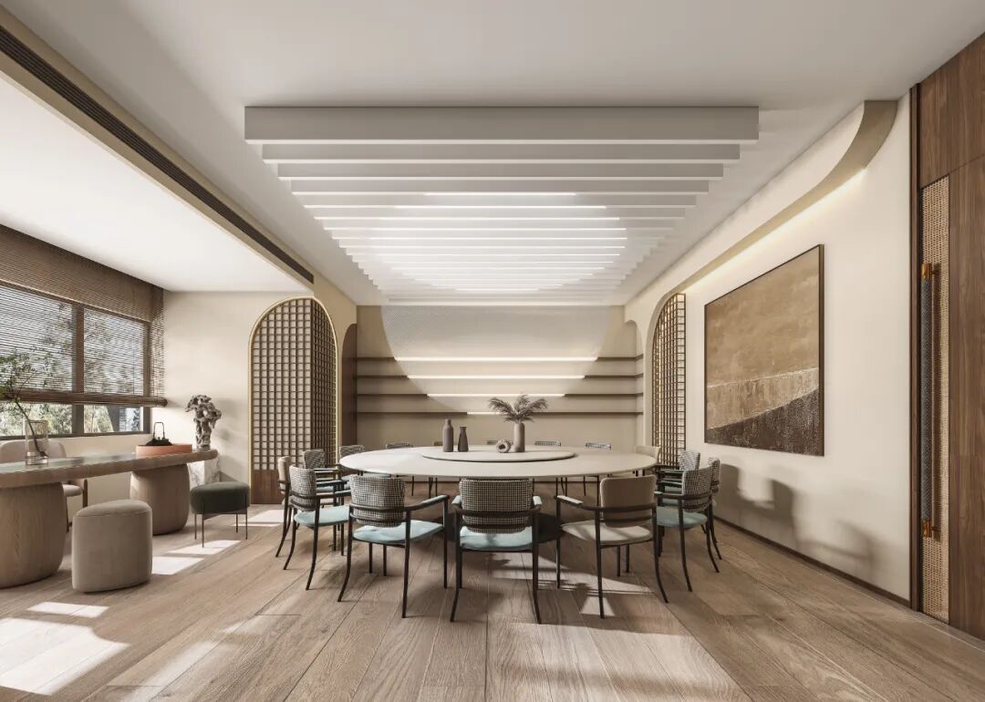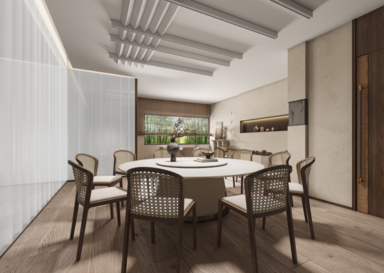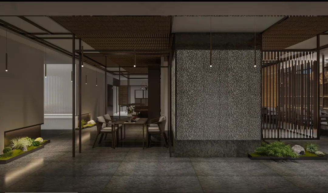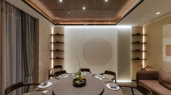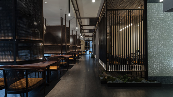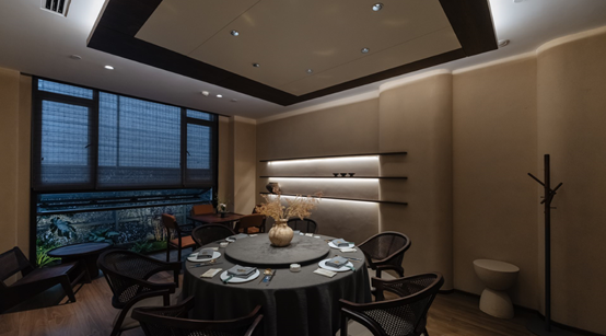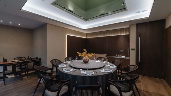 面对市场众多的商务宴请会所选择,我们本次设计摒弃豪华材料的堆砌的手法,做了一个有侘寂味道的禅意餐厅。我们还是从构建美好用餐体验的角度出发,通过对客户功能的深度挖掘,真正能提升用餐环境品质,打造一处放松和客户需求高度契合的空间。