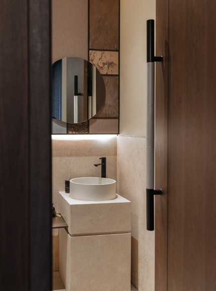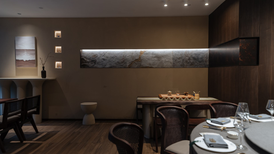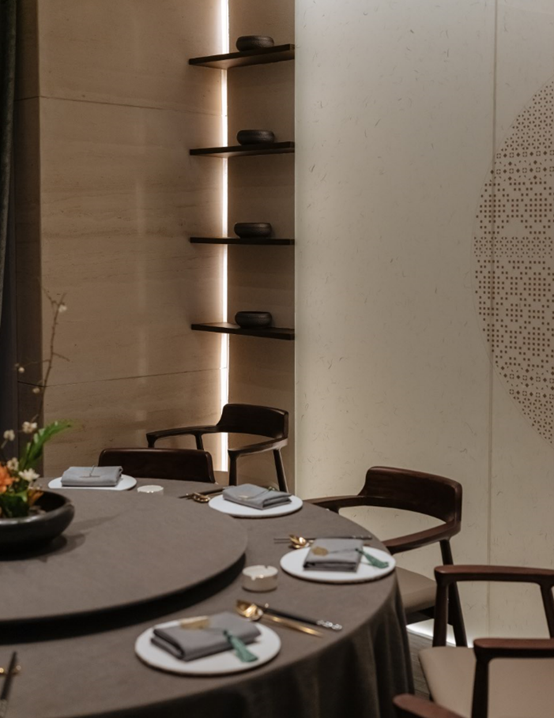 宋代提倡“以佛修心,以道养生,以儒治世”,形成儒、释、道合一。儒是形,佛道是心性。一楼前厅不刻意的装饰外表,强调事物质朴的内在,独家定制的瓷板精湛的展现传统工艺,亦烘托了静谧的空间氛围,显露道家思想“天之道,不争而善胜。”