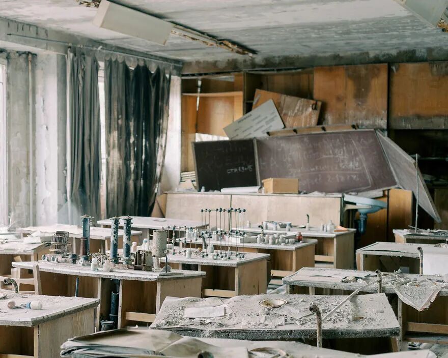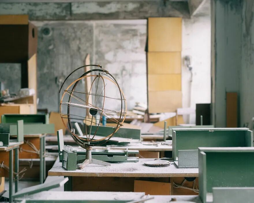 普里皮亚季的学校令人着迷:许多不同的教室,许多大小不同的事物,瞬间把你带回到那个红旗飘飘的年代。