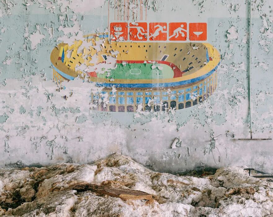 1980年的莫斯科夏季奥运会对普里皮亚季也是一件大事。除了吉祥物,可爱的熊米沙(或Mishka)的图像外,卢日尼基奥林匹克体育场的壁画也可以在那里的许多体育馆之一中找到。