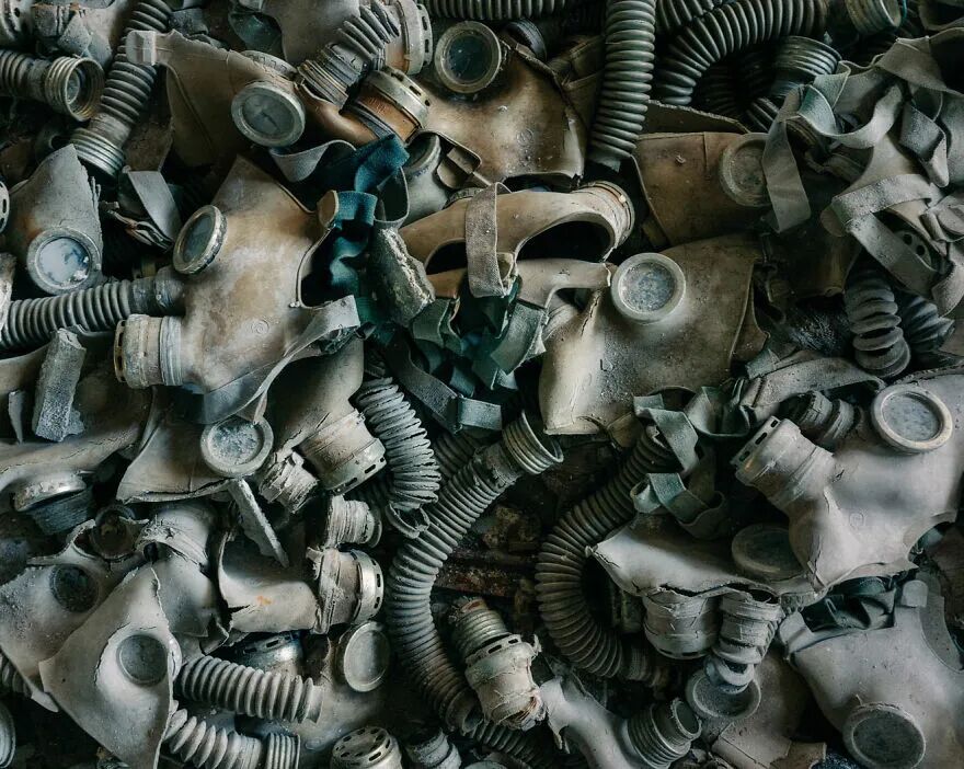 在普里皮亚季到处都能看到无数的防毒面具。可能有人认为主要原因是靠近弗拉基米尔一世列宁电厂,但实际上,库存大量防毒面具并不罕见,例如在苏联的学校和其他公共建筑中:在冷战时期,对美国的核袭击的恐惧无所不在。