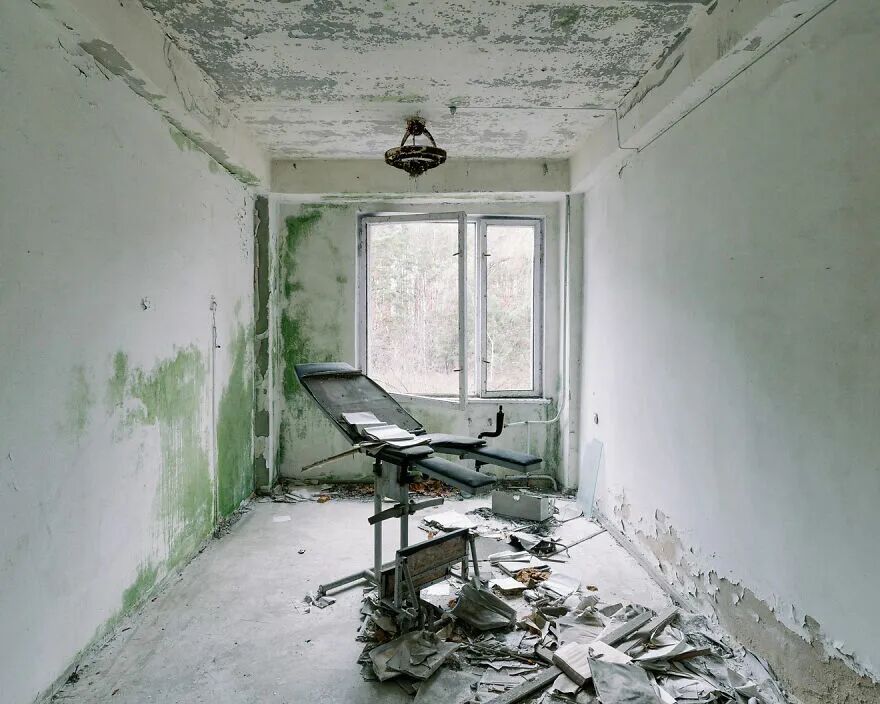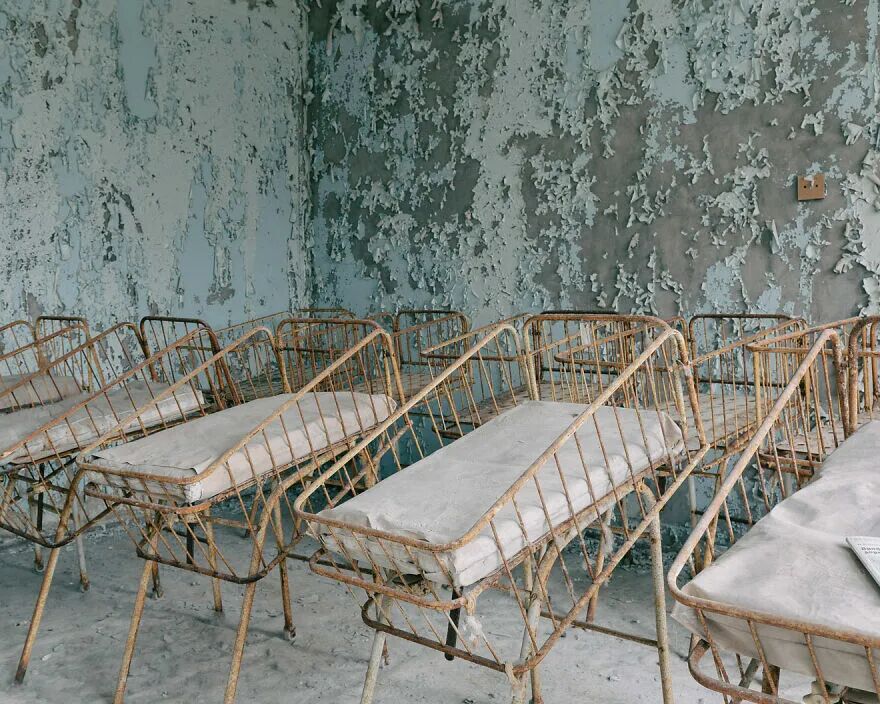这里是医院的一角,灾难发生后,这是接收从反应堆中救出第一批消防人员的医院。受污染的制服在消防员抵达后立即带到地下室,以防止进一步的污染至今仍在那儿。但是,建议不要进入地下室,因为它仍然是普里皮亚季最受污染的地方之一!