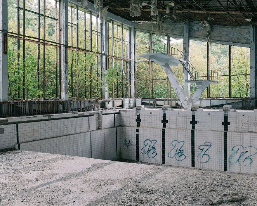 这就是著名的“ Azure”游泳池:除了摩天轮之外,它可能是普里皮亚季最著名的建筑。它还出现在《使命召唤:现代战争》等电子游戏中。