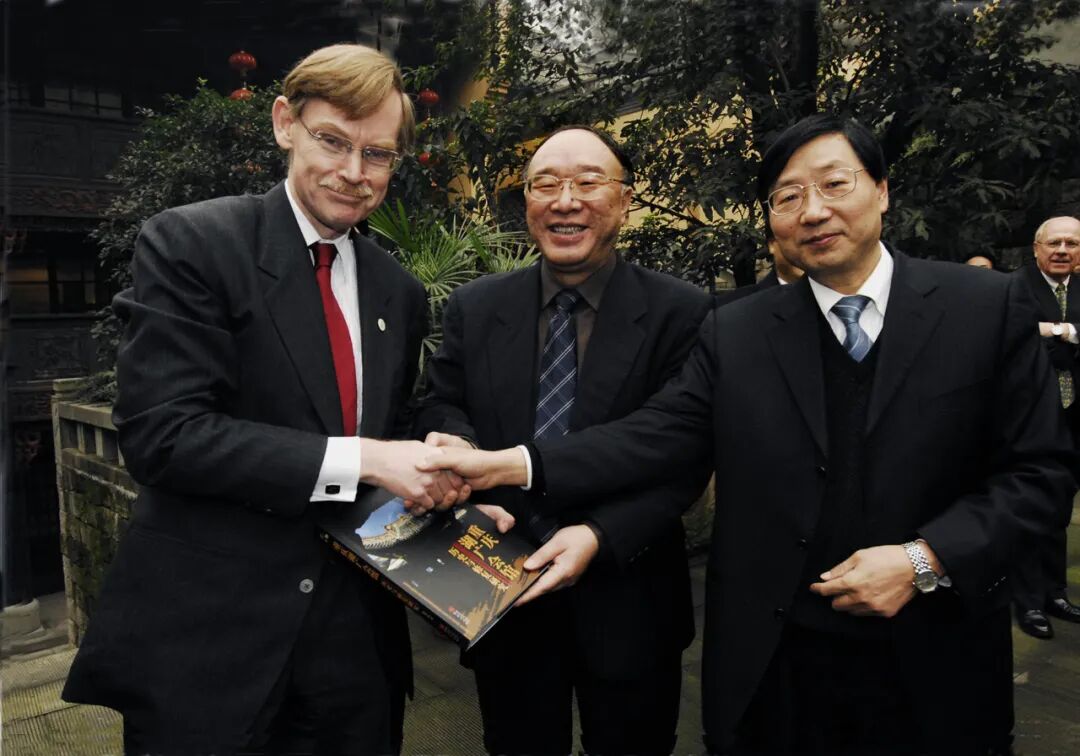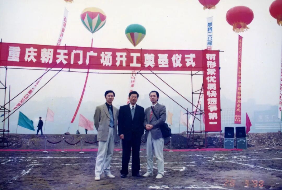 朝天门广场开放仪式上,与重庆建筑大学祝家麟校长、姚木远副书记合影