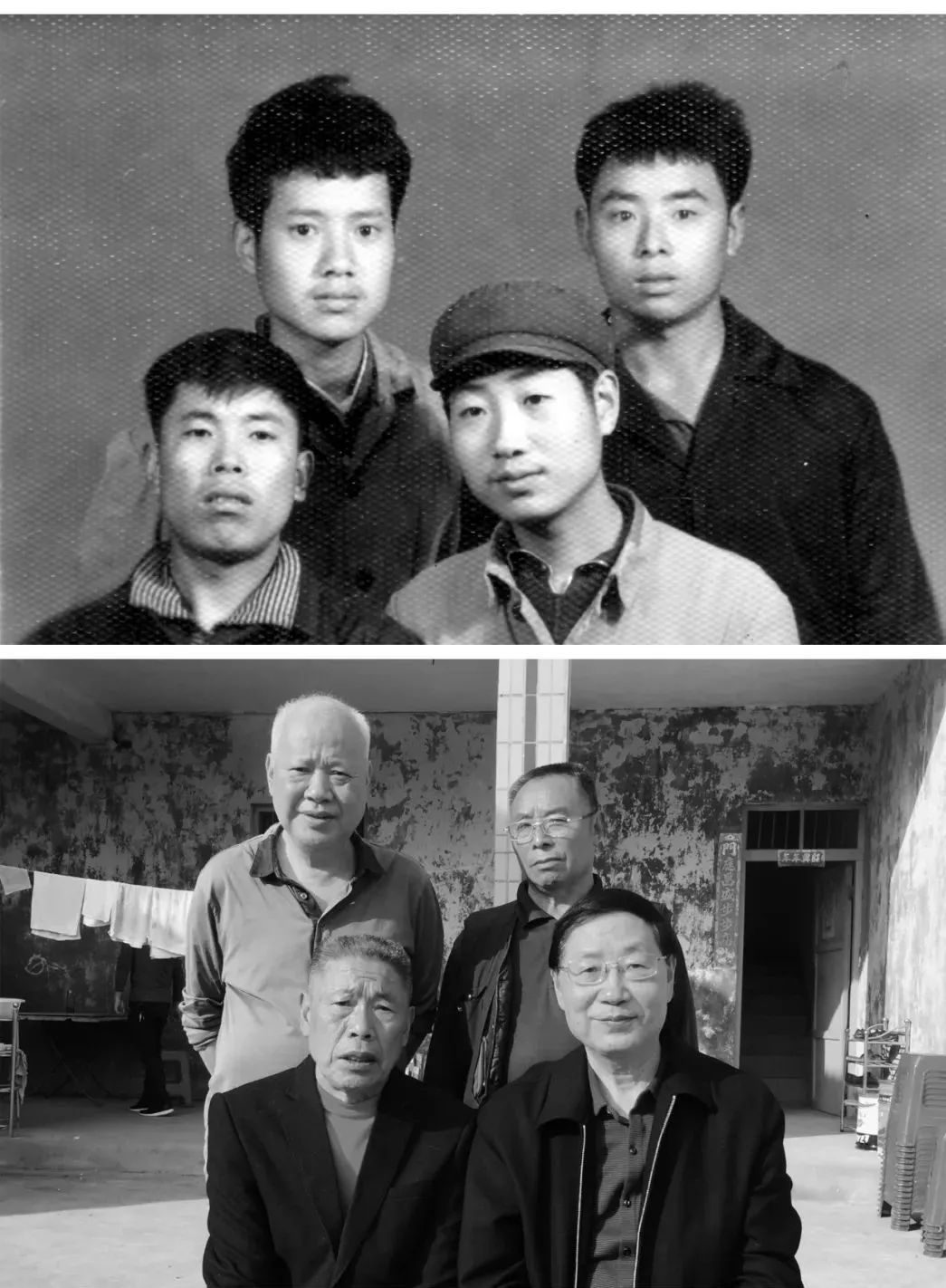 45年岁月变化:与农村青年合影——上图1972年,下图2017年