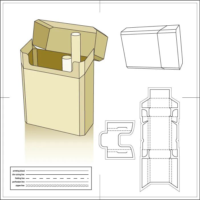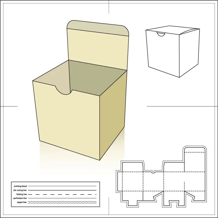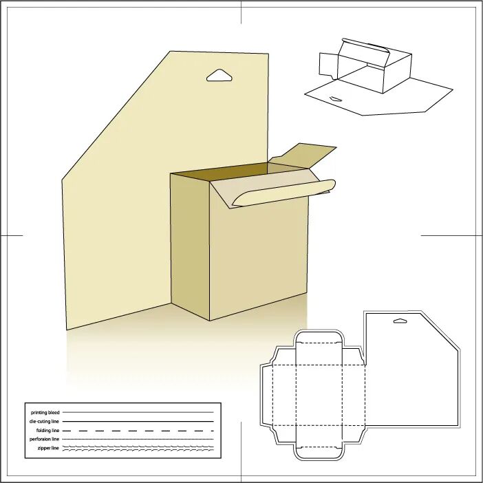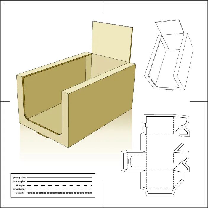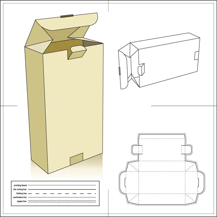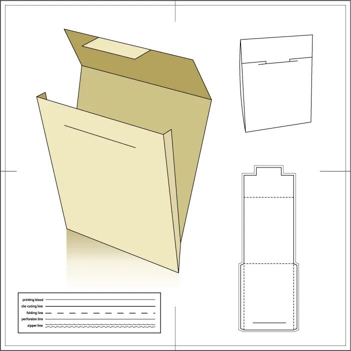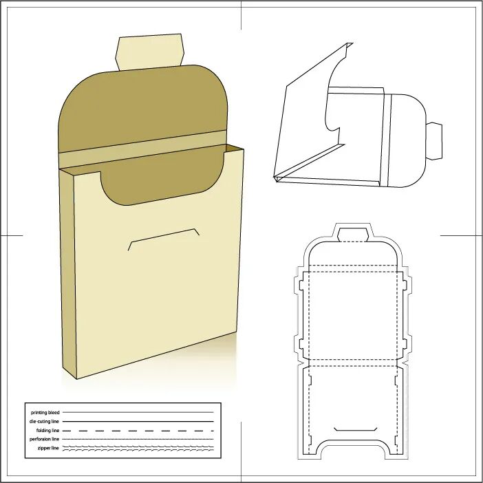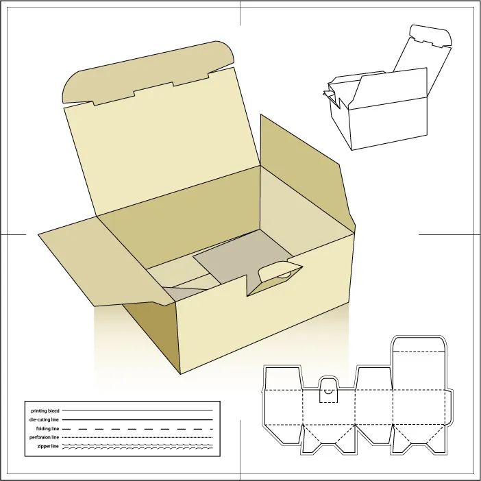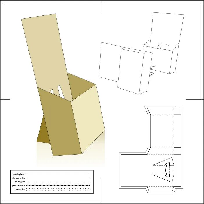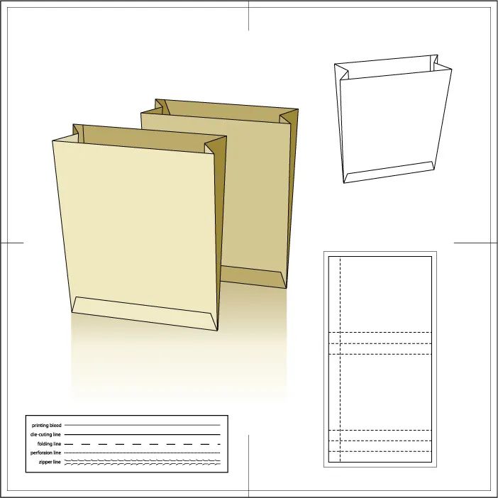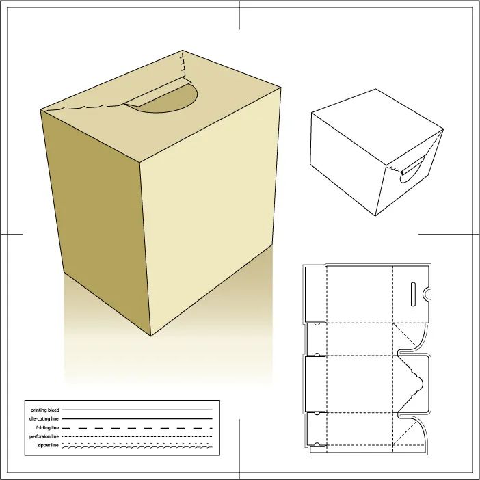 手提袋刀版图纸可以在CAD进行绘制,也可在AI、雅图、CDR等软件内绘制。根据设计师擅长的软件进行绘制。绘图顺序是先画大面,再画粘口及其他折痕部位,然后调整细节,最后检查标注尺寸。