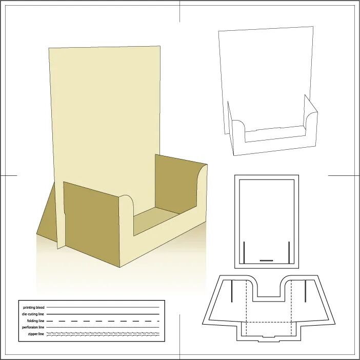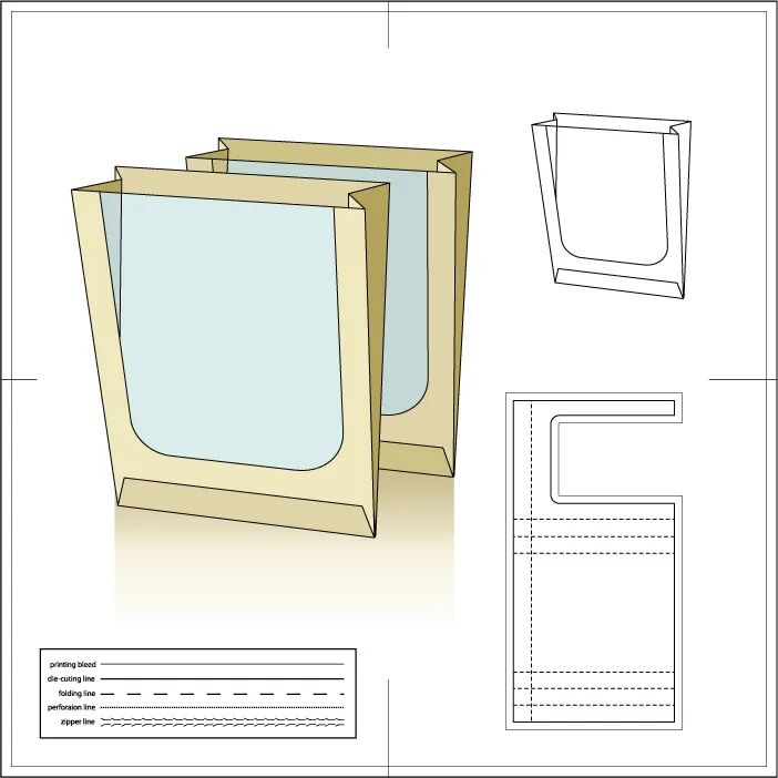 确定手提袋尺寸后,设计师就可以开始画刀版图纸了。刀版图又名刀版文件、刀模文件,是用来制作刀版(刀模)的文件。由于很多印刷品都是非矩形的,所以在印刷等工艺完成后,在最后出成品的时候,需要制作刀版(刀模)把印刷后的半成品模切(或卡)成一定的形状,如纸盒,手提袋,包装袋,信封等。这个就是生产中用的刀版,而在制作这个刀版的时候,就需要相应的电子文件,也就是刀版图。在电子文件中,会用不同颜色的线条标示切断和压痕的位置。在设计文案开始之前要先画好刀版图,先将手提袋的压痕线画出来,确保一次成功,不要每次图纸的调动都要调整内图。