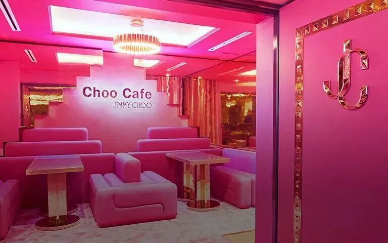 Jimmy Choo于9月30日前在伦敦奢侈品百货Harrods哈罗德五楼开设快闪咖啡店Choo Café,以推广将于今年秋季上架发售的“Varenne Avenue” 手提包系列。该咖啡馆整体色调选用紫红色,菜单由哈罗德百货专业厨师负责,餐具和装饰均印有品牌logo,旨在用极具巧思的设计吸引消费者自发拍照在社交媒体上发布打卡。