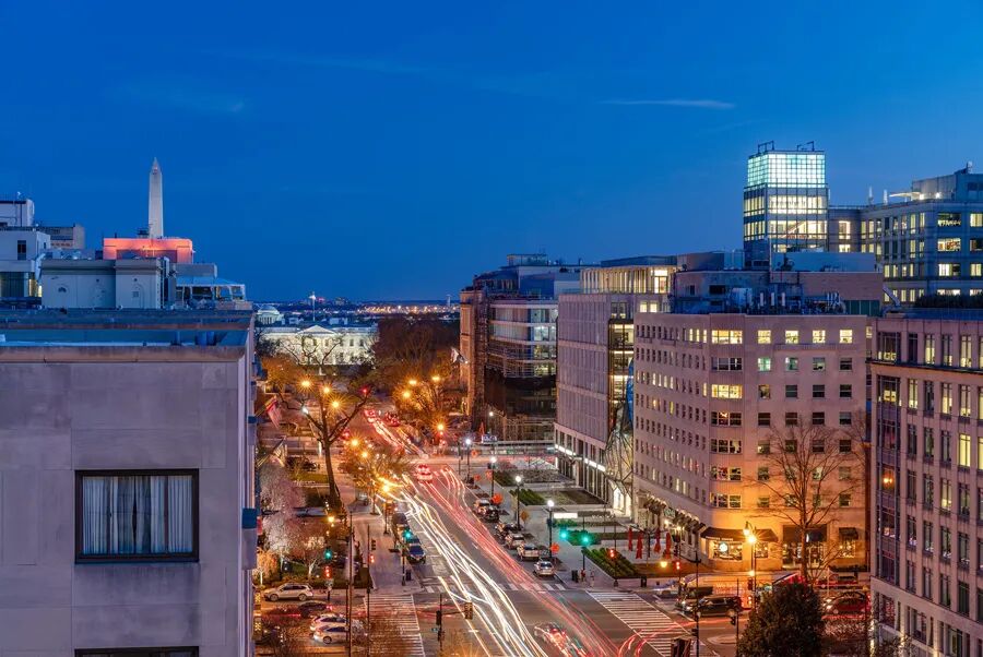 顶楼视野:建筑顶部的两个机械用房被重新设计成新的租户空间。顶层进行了退台处理,创造了公共和私人屋顶露台,为租户提供可以欣赏到白宫的视野。