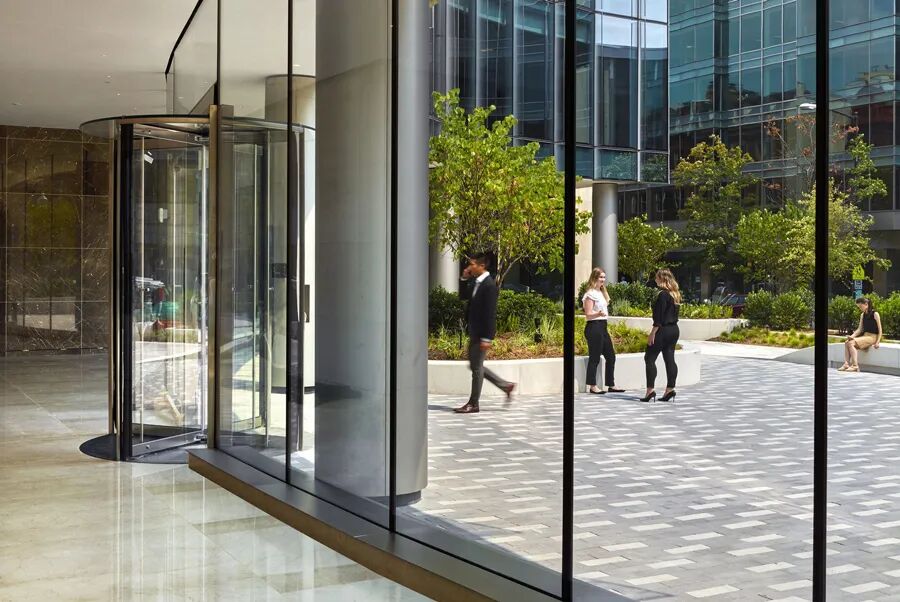 The design of 1771 N Street takes a 1960s legacy building and updates it with a stunning new glass facade, rejuvenated outdoor spaces and interior improvements that immediately make it more welcoming and dynamic.