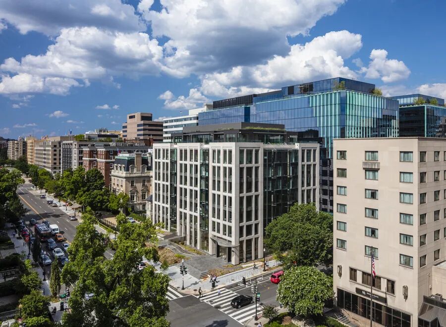 This project rejuvenates and links two adjacent 1970s Brutalist structures into one freestanding, trophy-class office building in downtown Washington, D.C. The design introduces contemporary elements while paying respect to the historic 16th Street corridor.