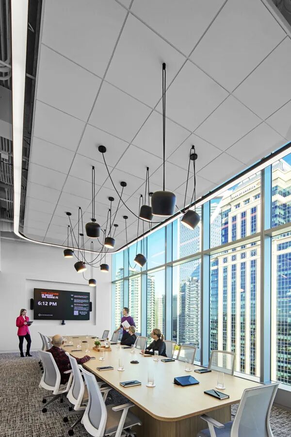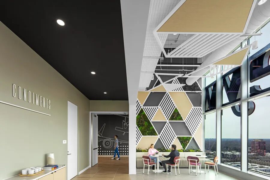 人性化的设计理念传达了霍尼韦尔致力于身心健康的承诺。办公空间充满了自然光,员工们能够尽情地欣赏这座城市的美丽景色。天然材质、有生命力的植物,和一面绿植墙让人更加贴近自然。分形图案的墙面、以自然材质制作的装饰品、以自然元素为主题的艺术品,共同构成了空间的装饰。