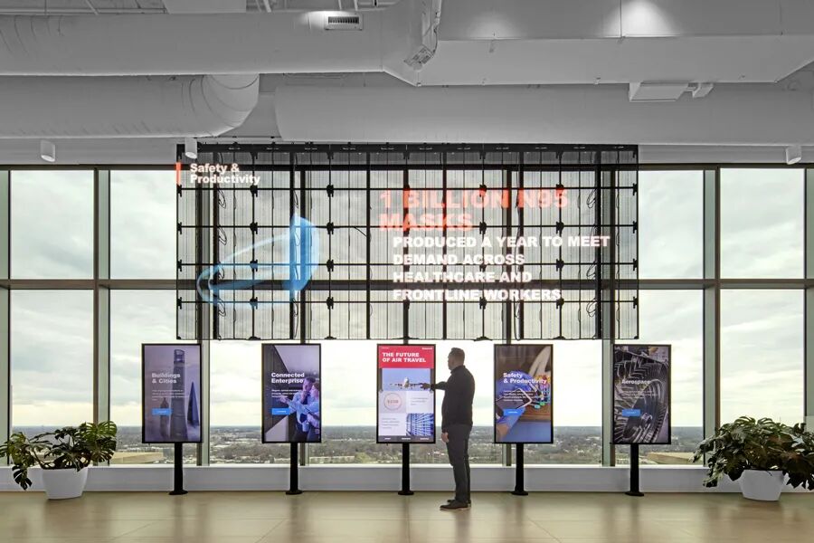 位于23楼的顾客体验中心展示了霍尼韦尔的产品和技术。这是一个交互性的、身临其境的空间,由四面墙上的图片创建出一种个性化的视觉和听觉体验。“加速剂咖啡吧”和培训中心也位于23楼。