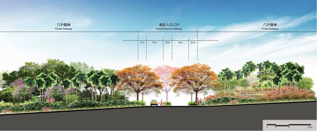 景观设计结合场地地形地貌由北至南依次展现了:森林、溪流、沙丘、湿地以及海洋五大具有当地特色的景观元素。多层次、多元化的景观设置目的在于吸引酒店客人走出房间融入自然进行充分探索和享受。