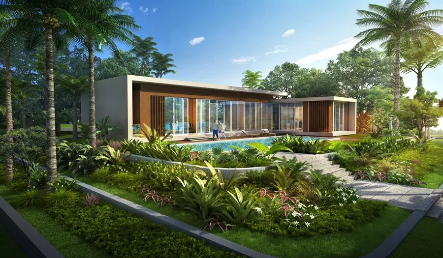 The four distinct landscape layouts for the resort include the Mountain-Ocean Corridor, Winding Creek Corridor, Green Bamboo Corridor and Banyan Corridor.