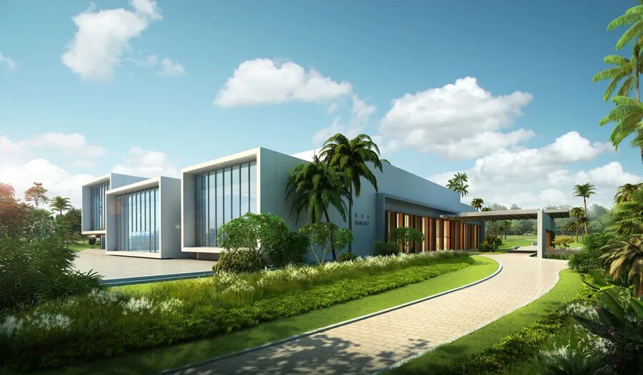 建筑外立面简洁大方,建筑形态采用简奢的白色盒子概念。配合小体量分散布局,并结合景观绿化的遮挡,使得建筑形态在海岸沿线若隐若现地托举在景观之上,犹如散落在沙滩上的一颗颗宝石熠熠生辉。
