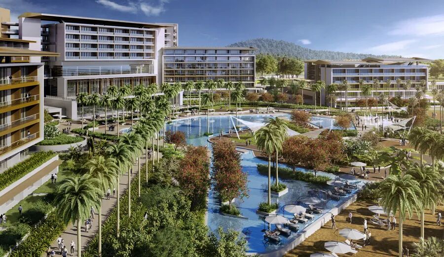 三亚天丽湾凯悦酒店位于海南省三亚市,距离机场4.5公里,地处海南第一名胜 - 三亚天涯海角景区内,是富华国际集团与凯悦酒店集团携手打造的临海景观休闲度假型酒店,背靠山峦,面朝大海,具有独一无二的私属海岸线风景。HOK为项目提供了总体规划、建筑设计及景观设计服务。项目目前主体已经接近完工,并正在进行景观的施工打造。