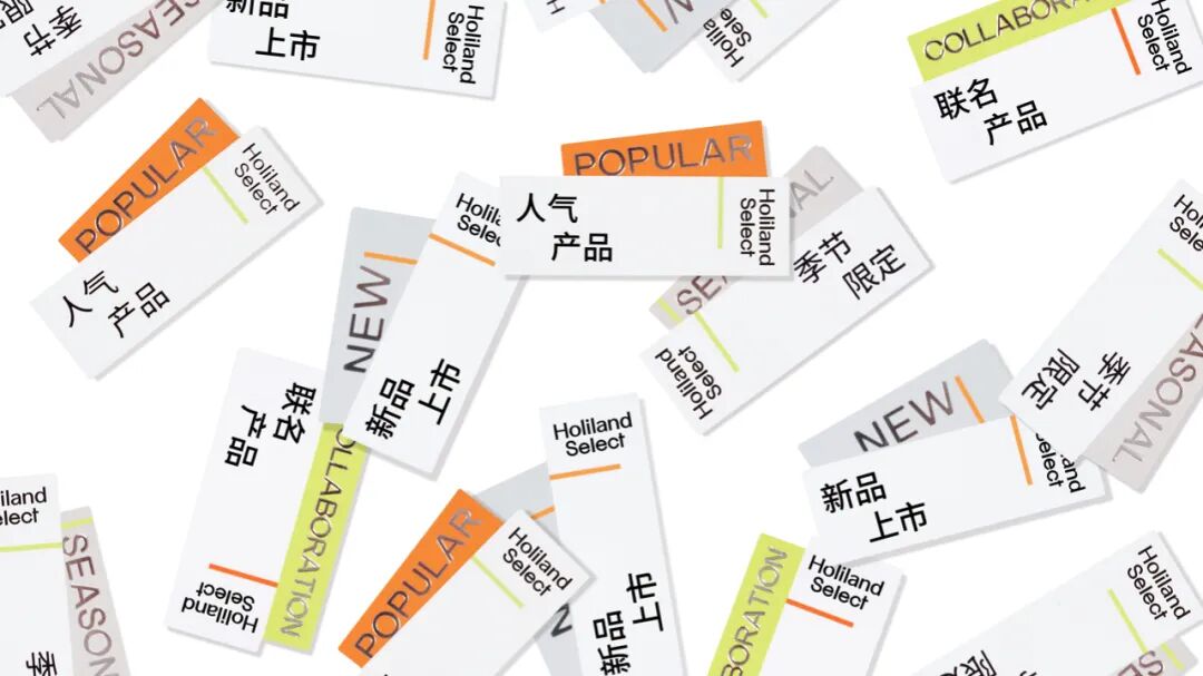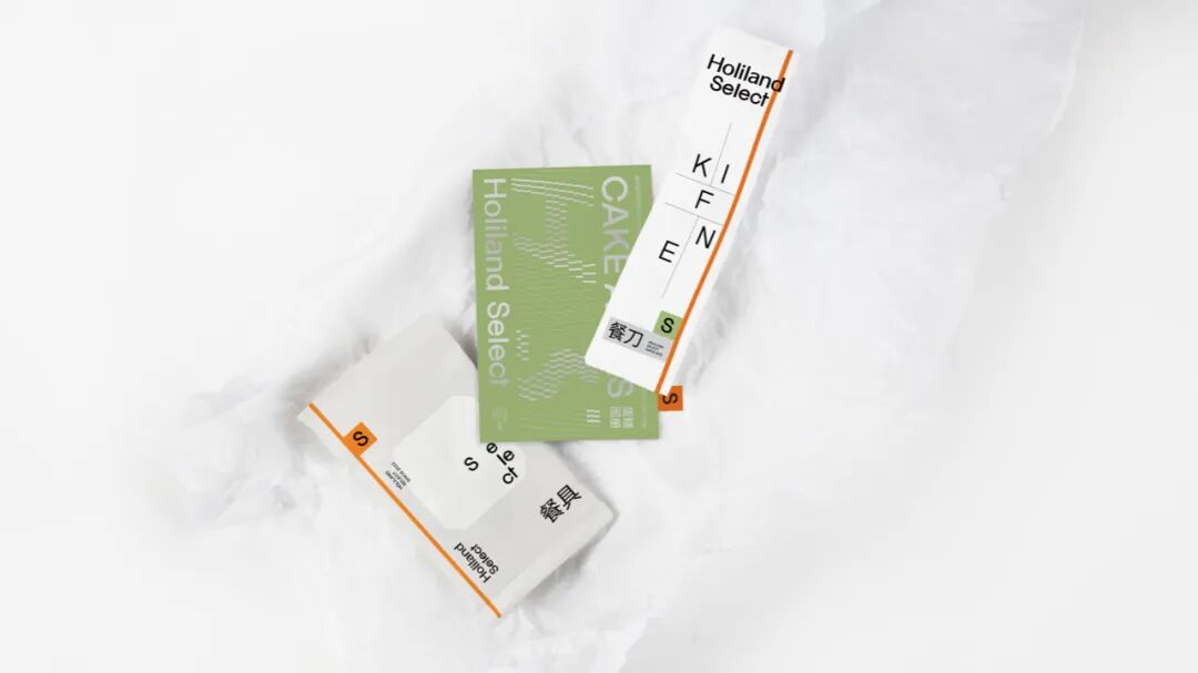 整套视觉的灵感来源于{甜品与时装}创作时的混淆。时装界时常借用来自甜品的灵感进行创作。从面料的选择,到色彩,印花,廓形的偏爱,再到时尚大片的拍摄,时装设计师们大胆创作取材于{甜品}的时尚。Holiland Select反其道行之,以现代时装设计中“线”的表达作为品牌视觉的起点。