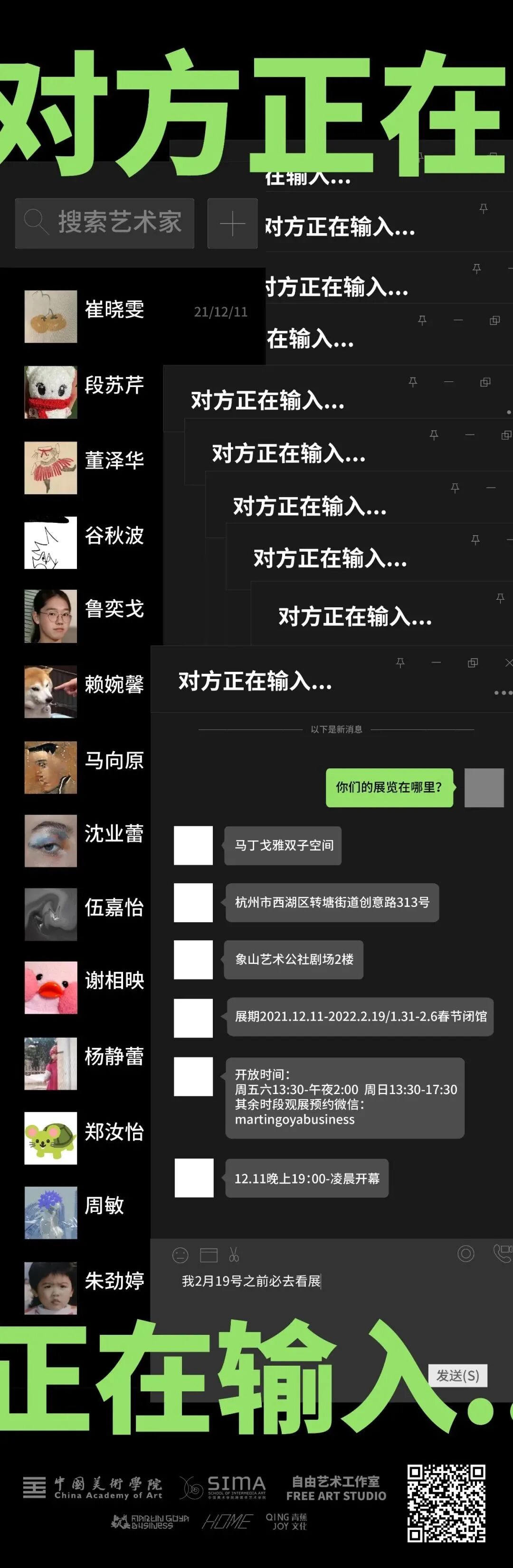 首次开幕呈现中国美术学院跨媒体学院自由艺术工作室的年轻艺术家策划的展览《对方正在输入...》。