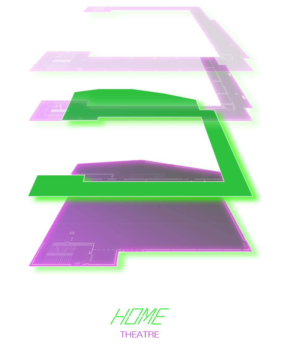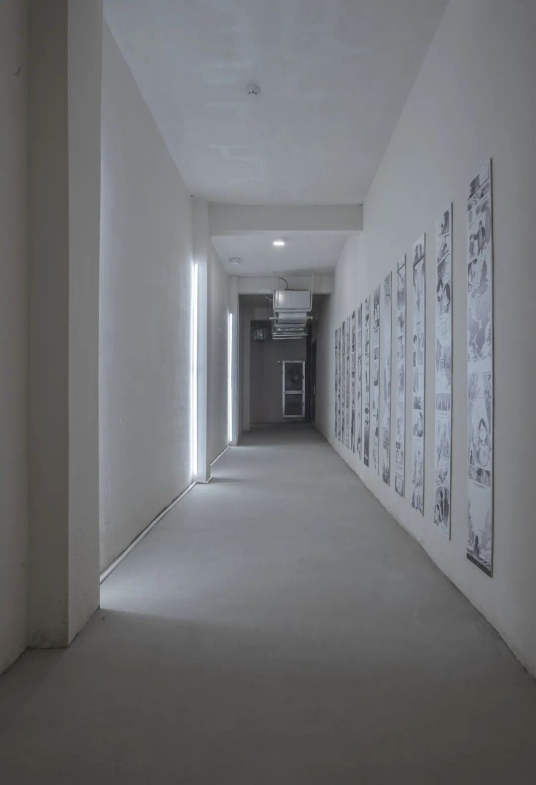 宅HOME Theatre 侧翼盘旋向上的二层展厅将迎来首次开放,300平米的回廊及原有功能为演员休息室的空间将被命名为「The Academy」, 剧院二层空间的未来方向将作为关注仍在美术学院在读的未来艺术家的实验展示平台。
