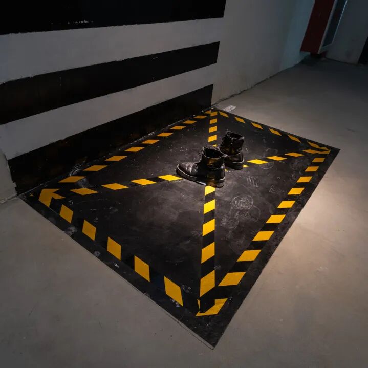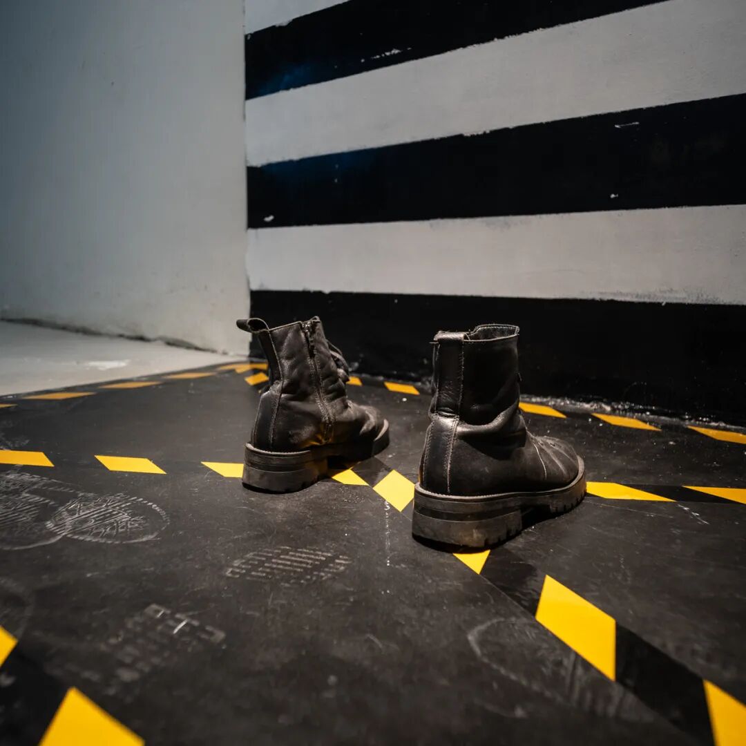 用一双靴子和一些与环境的互动表现一个透明的主人公的情绪和状态,拍摄场景包括电梯间、厕所、楼道等。