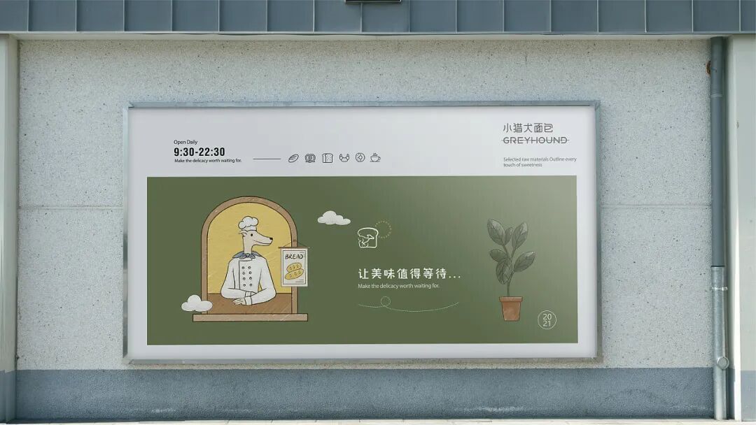 小猎犬面包公司是福州网红烘焙品牌,深受80,90,00后女性深爱,品牌主要为新一代年轻人提供优质可靠的烘焙产品,以改善国人体质为准则,也是品牌发展的目标之一。而在设计上,也是基于温暖、治愈的格调展开联想,以手绘插画的形式表现产品内容;LOGO设计也以面包的造型为灵感,通过抽象线条直观地展现品牌性质,趣味而又不失气质。