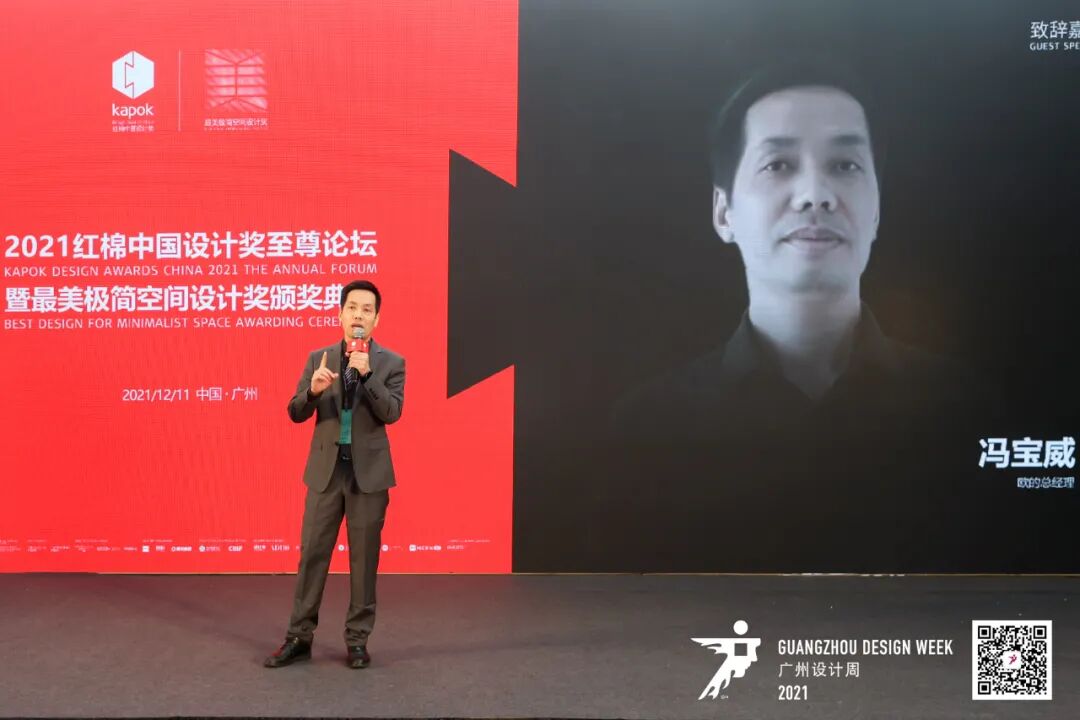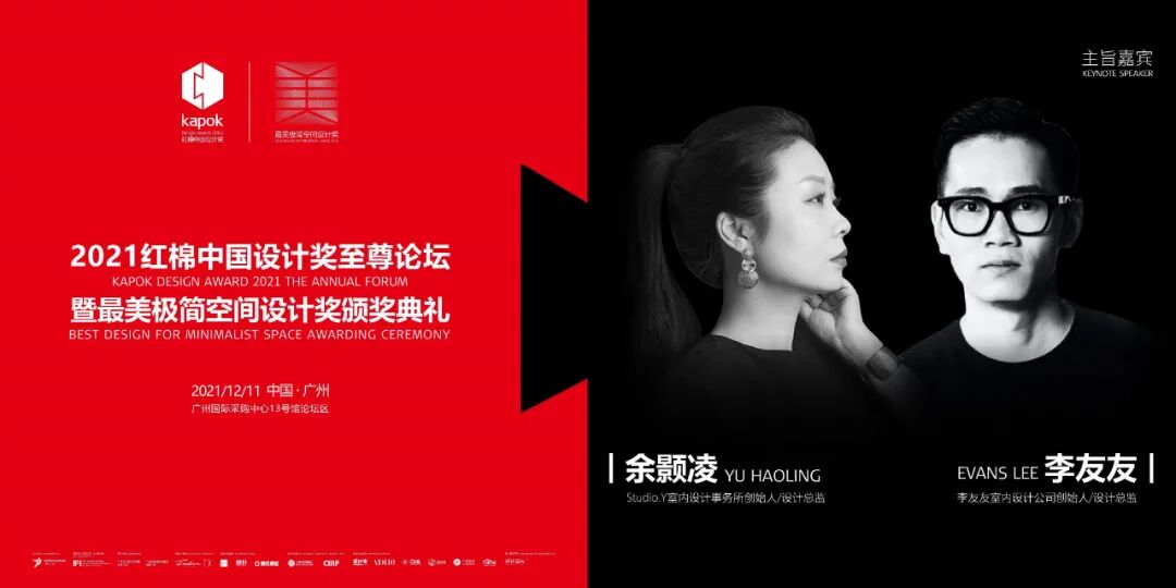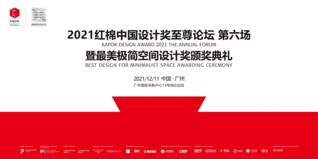 12月11日上午,2021红棉中国设计奖至尊论坛暨最美极简空间设计奖颁奖典礼于广州国际采购中心13号馆论坛区隆重举行,活动邀请到广州李友友室内设计有限公司设计总监李友友先生,Studio.Y余颢凌设计事务所创始人、设计总监余颢凌女士、2021最美极简空间设计奖战略合作伙伴——BORAN/CASA柏冉整体木作创始人/董事长 陆国新先生、欧的极简窄边系统门窗总经理 冯宝威先生、2022最美极简空间设计奖战略合作伙伴——意大利诺宝瓷砖 董事长 邓宜伦先生以及广州设计周首席产业资源官 刘煜先生带来空间美学分享致辞并为2021最美极简空间设计奖获奖设计师颁发荣誉。
