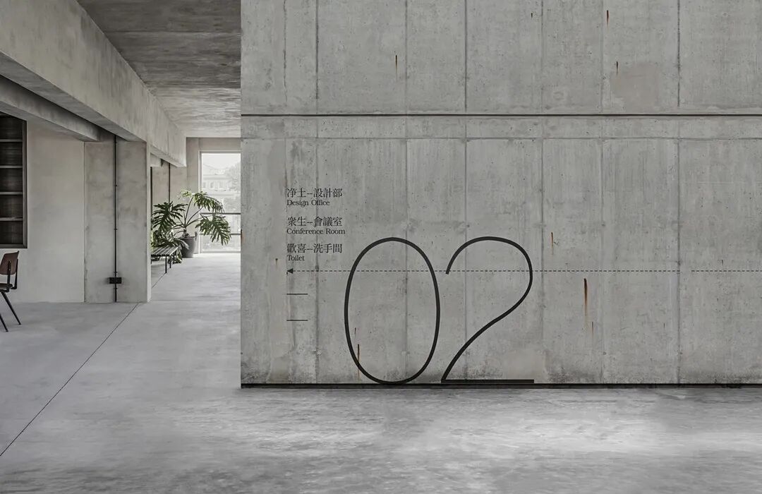 设计说明 | 标志图形创作分为上下两部分。下半部为隐没的建筑根基,亦指无界生长的源头精髓;上半部为向上而生的建筑框架,构成主题繁体“无”字,突出建筑设计的行业属性。打坐在建筑上的修禅者,寓意思考下的万物皆空。