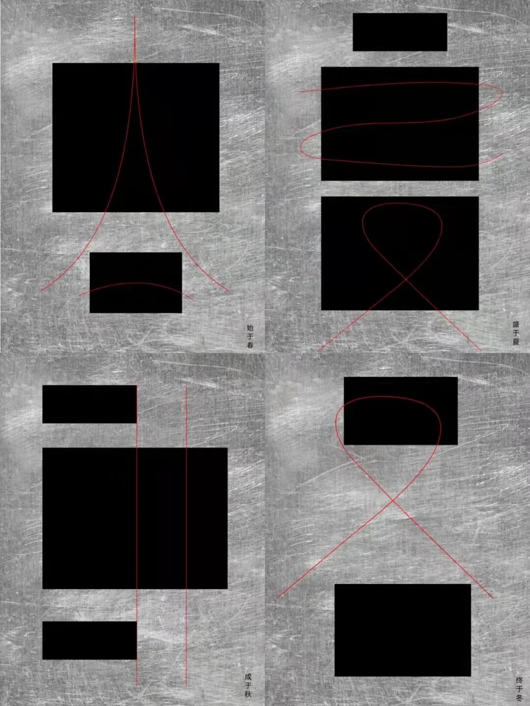 设计说明 | 对春夏秋冬进行极简化处理,画面中大色块加细线的组成了一副极具有美感的效果,打破了原有概念的字体,以一种新的方式表现出来。