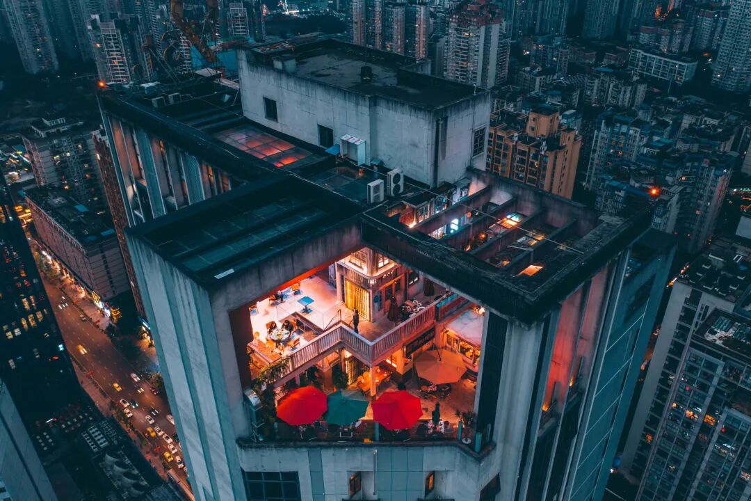 项目介绍 | 市井烟火气,在这空间里呈现出引人入境的享受, “人间烟火气,最抚凡人心”让来到这里的人,重返80年代,自由放松的在天台摆龙门阵、看电影、喝酒、划拳、跳舞。将复古场景与当代潮流结合,当夜幕降临,城市的夜景亮起,在重庆最繁华的商圈47楼之上,一览无遗城市璀璨的灯光,这便形成独有的天台文化。