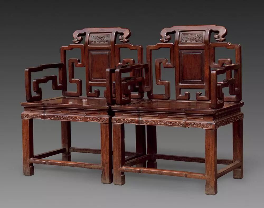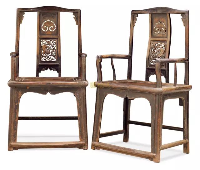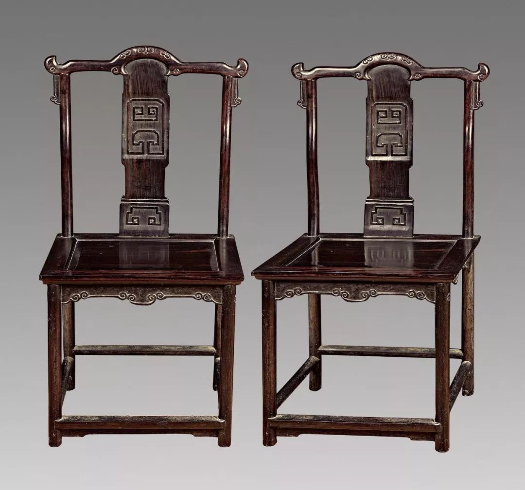 北官帽椅:靠背椅子的搭脑两端、左右扶手的前端出头,其背板多为“S”型,而且多用一块整版制成。