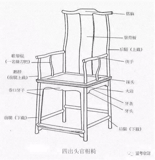 官帽椅分“四出头官帽椅”和“南官帽椅”两种。关于的名称之别,在古代还有个很好玩的说法: