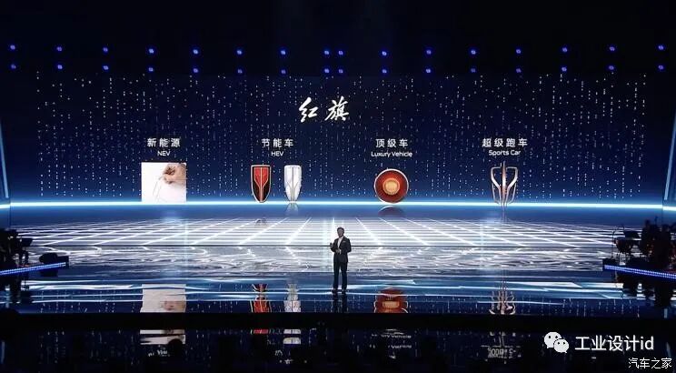 在发布会期间,官方还介绍了红旗新能源的全新设计语言。上图中分别展示了红旗新能源车头、车、车尾、车内的设计语言风格。