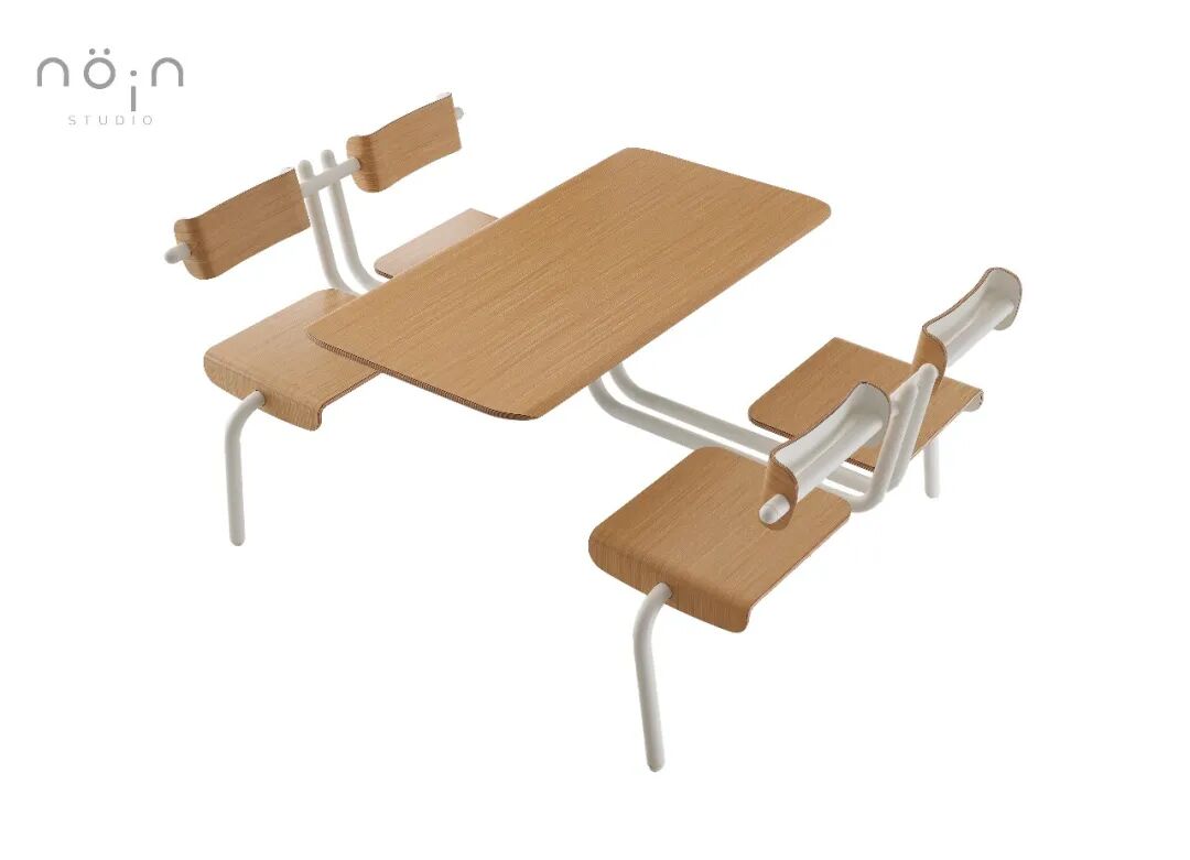 在对吸管和纸的草模进行实验后,很明显,要创造一种引人注目的美感,同时保持足够简单的风格,以便在大规模生产中保持现实性是很困难的。很巧合地,我们想到了孩子们用树皮雕刻的简单小船有一个用棍子和纸做成的帆。这种联系也非常符合我们想要实现的轻盈和简单的特征。这就是餐厅家具Air的灵感来源。