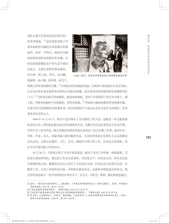 该书除了在研究内容方面完善外,更主要是丰富了延安木刻作品的收录和陈列。抗战时期的木刻作品因种种条件的限制,多为小幅,但是回望历史,这些熠熠生辉的经典木刻作品,厚重而博大。这些作品在本书中不只是研究内容的附图,并以独立篇幅得以展示。这些作品见证了伟大的中国革命,展现了中国人民走向独立富强的坚强意志。作品即是言说,它们与研究内容共同构成了中国革命的历史印迹。
