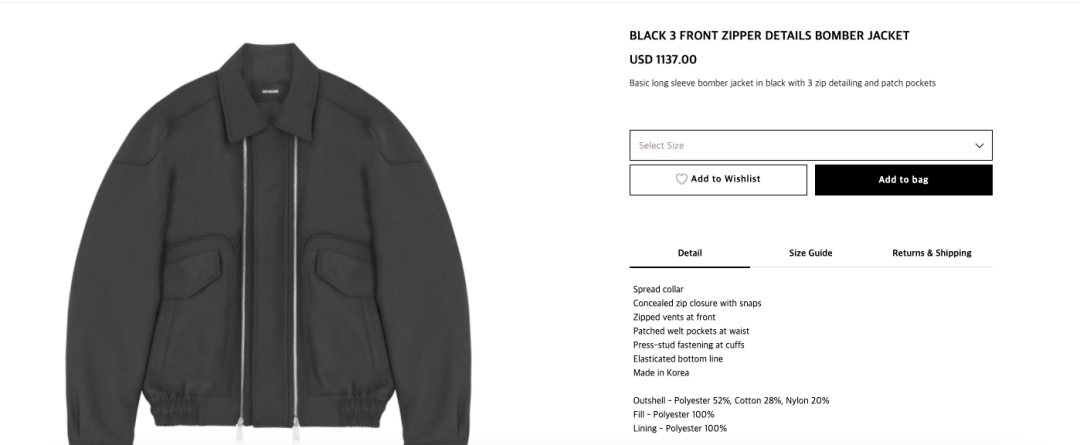WE11DONE黑色夹克官网售价。图/WE11DONE官网截图