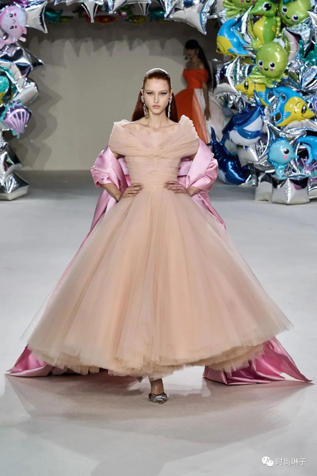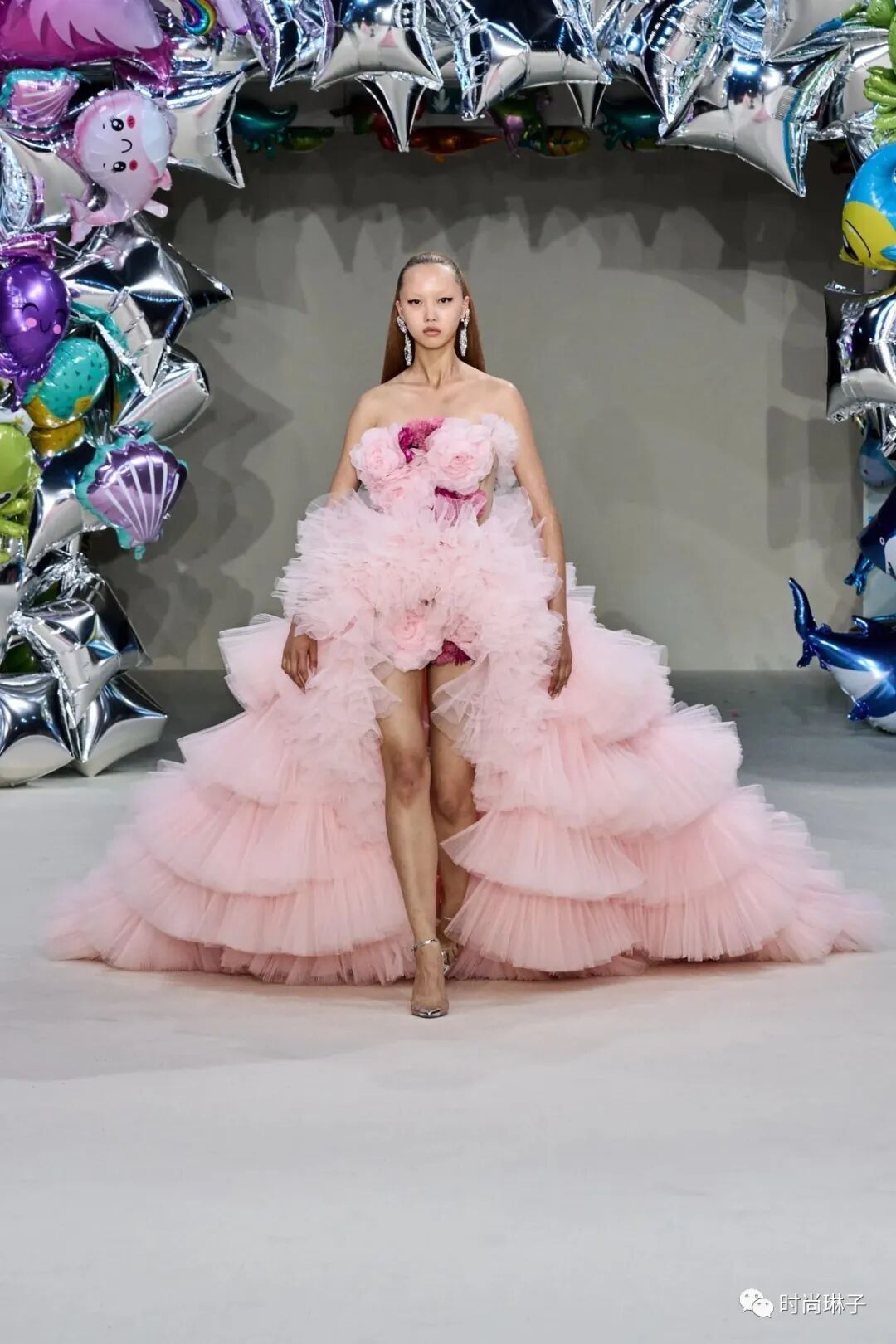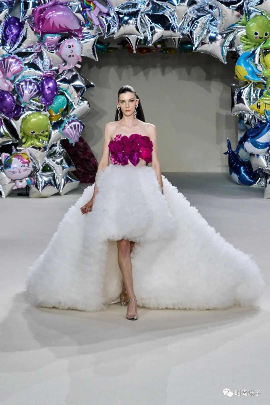 红毯仙牌Giambattista Valli在巴黎高定时装周期间发布了2022秋冬高级定制系列,设计师用彩色派对气球作为时装秀的背景门,以此来庆祝品牌高级定制时装创立十周年。