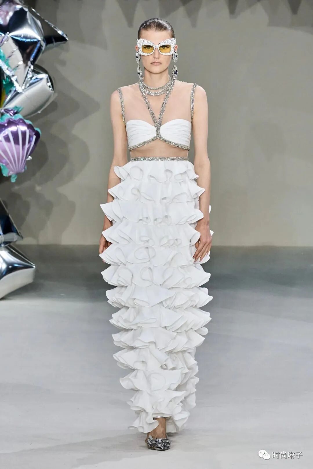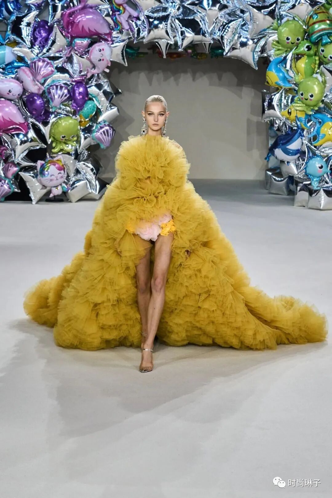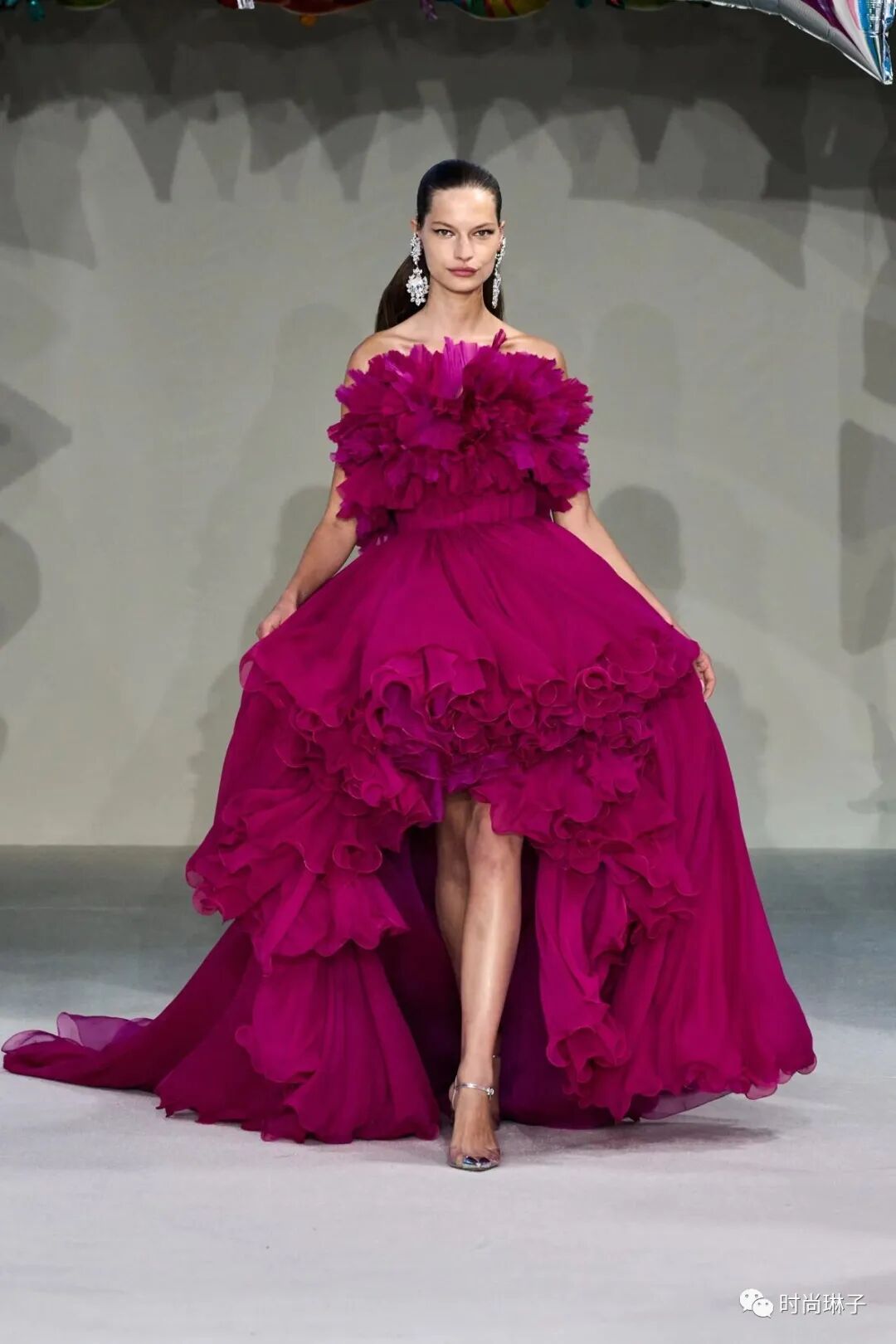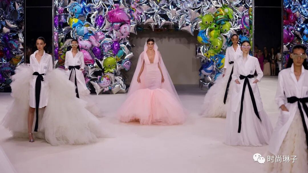 红毯仙牌Giambattista Valli在巴黎高定时装周期间发布了2022秋冬高级定制系列,设计师用彩色派对气球作为时装秀的背景门,以此来庆祝品牌高级定制时装创立十周年。